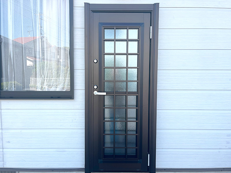 見た目も重厚感があり、外壁にもよく合っています。施工前の扉よりも開閉がしやすく、重い荷物を持って直接キッチンへ行くのがとても楽になったと思います。